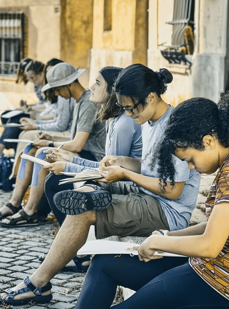 During these past five years, we have spearheaded an innovative outdoor studio program, leading students on immersive journeys that boldly step beyond the confines of a classroom. We painted a canvas rich in aesthetics, eco-consciousness, and mindfulness, giving rise to an atmosphere where learning seamlessly intertwined with the lived experience of the Camino de Santiago. The insight we've garnered from leading groups on these extended expeditions has equipped us with the finesse to overcome challenges and deeply savor the myriad joys of such unique experiences. Whether it was a workshop set against nature's backdrop, or at the heart of an ancient plaza, or the delight of engaging with warm-hearted locals and savoring unexpected culinary gems, every facet of our program was meticulously curated, aiming to immerse participants in the essence of mindful and responsible pilgrimage, within a context of rich cultural immersion.