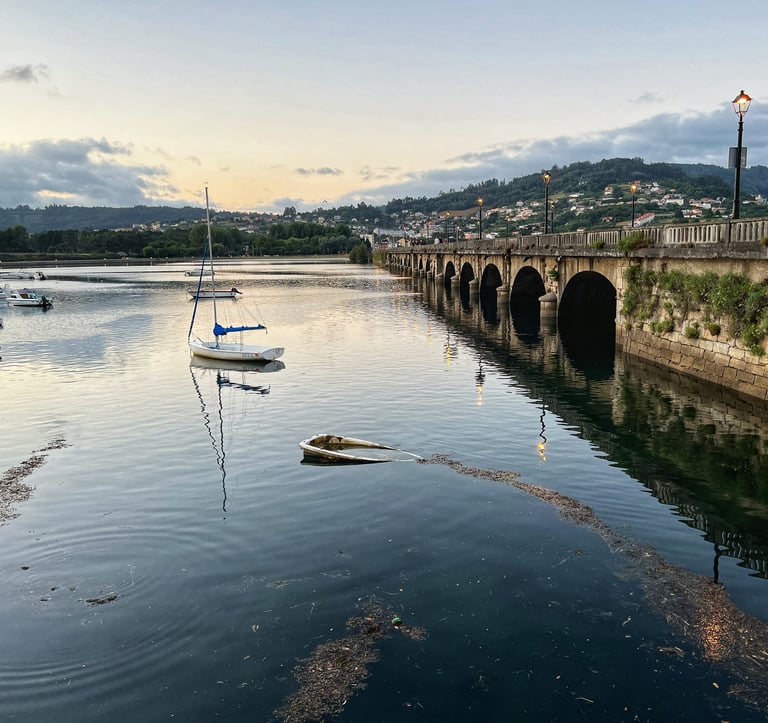 Traversing the Camino Inglés, pilgrims cross a series of historic bridges, architectural relics that weave through Galicia's rich medieval past and into the present journey. Among these, the Pontedeume bridge stands as a crowning example of Gothic design, stretching its stone arches across the Eume River since the 14th century, a silent sentinel to the ebb and flow of history. As the path continues, the bridge at Hospital de Bruma arches over a tranquil stream, its rustic beauty offering pilgrims a quiet pause for reflection. Each crossing on the Camino Inglés is a connective strand to the continuum of stories and souls that have shaped this pilgrimage through the centuries, making the bridges not merely structures of stone and mortar but sacred thresholds on the road to Santiago.