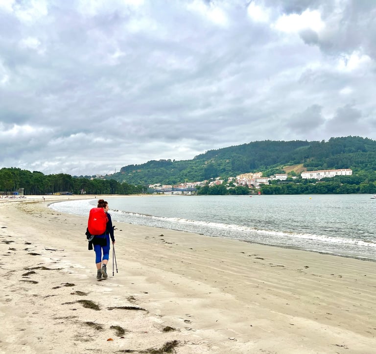 This section offers an enchanting coastal passage, with stretches that meander along northern Spain's rugged, picturesque shores, where the land greets the Atlantic. From the outset, particularly from the port city of Ferrol, the path affords pilgrims the rare opportunity to walk beside expansive beaches, such as Doniños and San Jorge, where the sand unfolds beneath the vast sky and the waves whisper ancient secrets. These sandy stretches are natural sanctuaries where one can meditate to the rhythm of the sea, find solace in the horizon, and feel the timeless pulse of the ocean. The beaches along the Camino Inglés not only provide a scenic backdrop but also offer moments of respite and contemplation, where the spiritual journey is complemented by the soothing presence of sea air and the tranquil sound of water caressing the shore, inviting pilgrims to reflect deeply as they tread the liminal space between land and water.